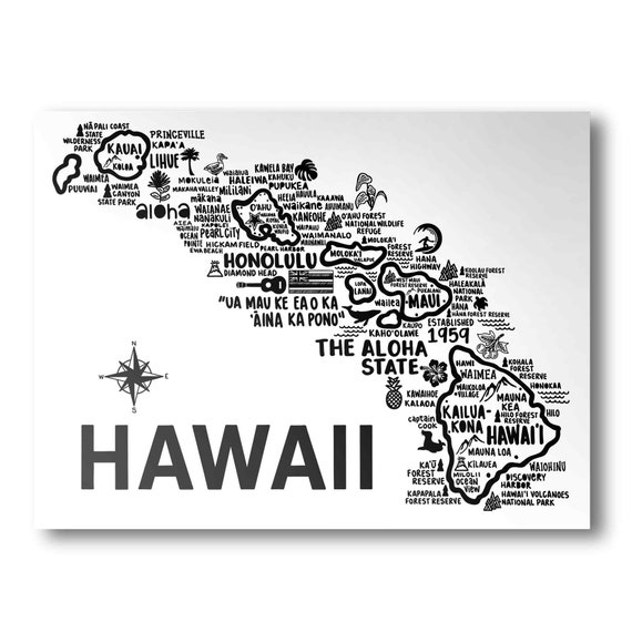 Hawaii Map Print Minimalist State Map State Poster Wall Art Home