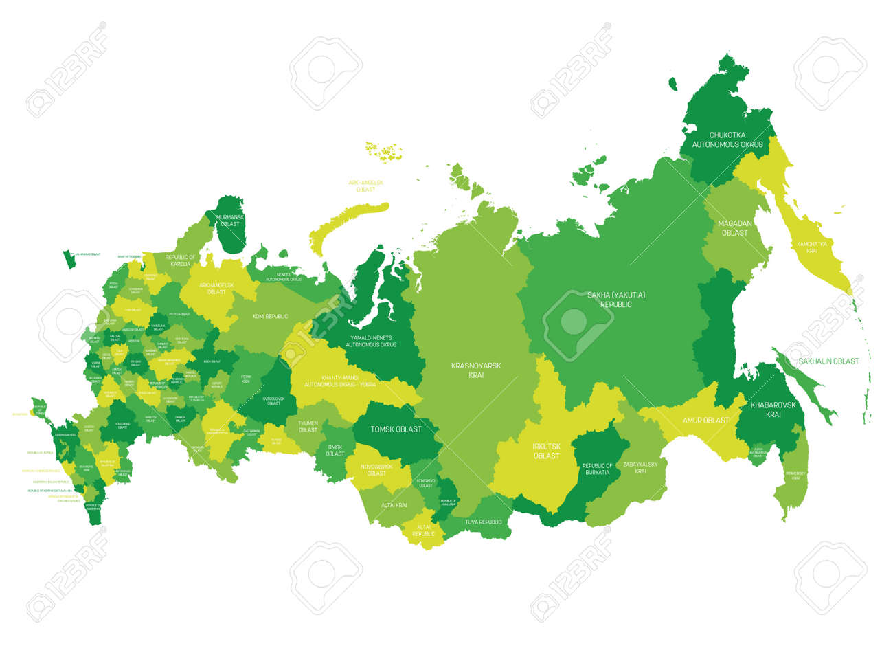Green Political Map Of Russia, Or Russian Federation. Federal