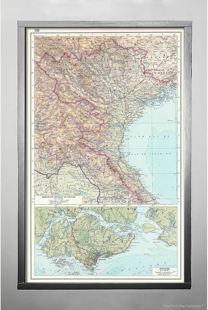 1967 Map: World Atlas 133. Democratic Republic of Vietnam North